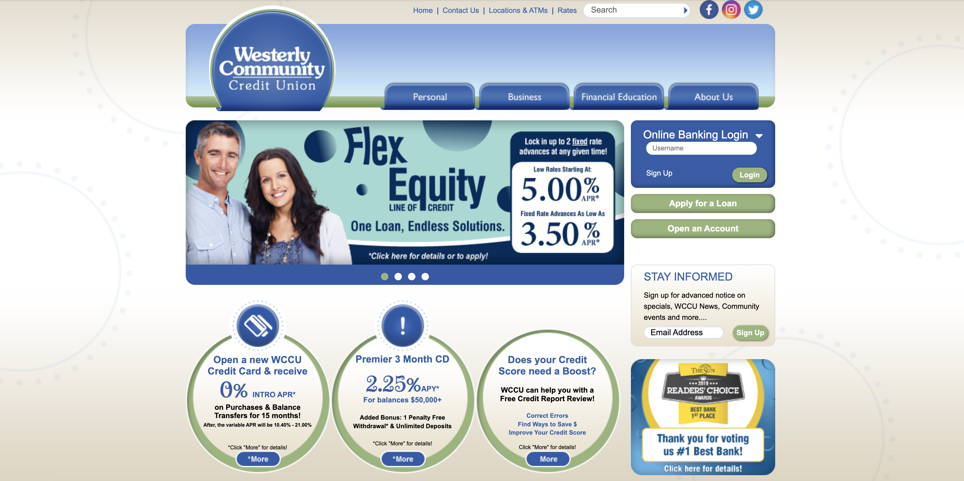 I worked as a Marketing Specialist at Westerly Community Credit Union. Tasked with delivering digital content according to the advertising schedule, I worked on multiple campaigns at once and uploaded content to the credit union website, as well as Facebook, Instagram and Twitter. Additionally, I built weekly email marketing campaigns in Constant Contact and performed A/B testing to reach and exceed user conversion goals. I applied list segmentation to tailor email marketing campaigns to relevant member groups.